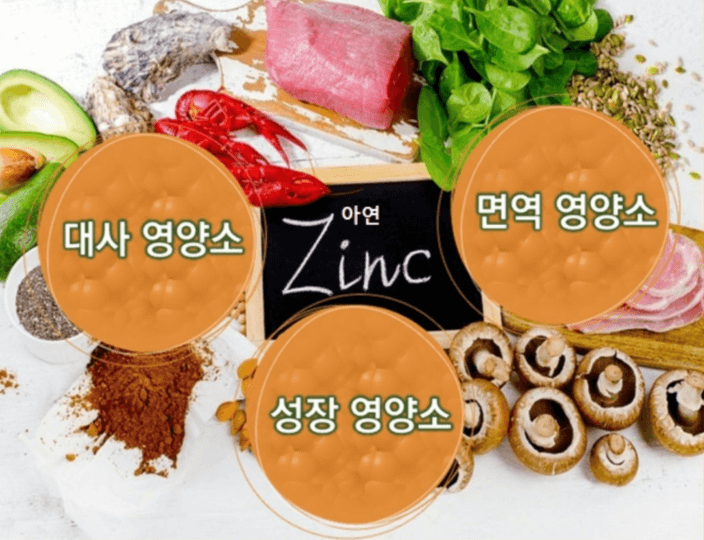 성장 발육 : 태아나 성장기 어린이의 세포분열에 필수, 부족 시 정상적인 성장이 안되고 관절염이나 골격 장애가 일어날 수 있습니다.
